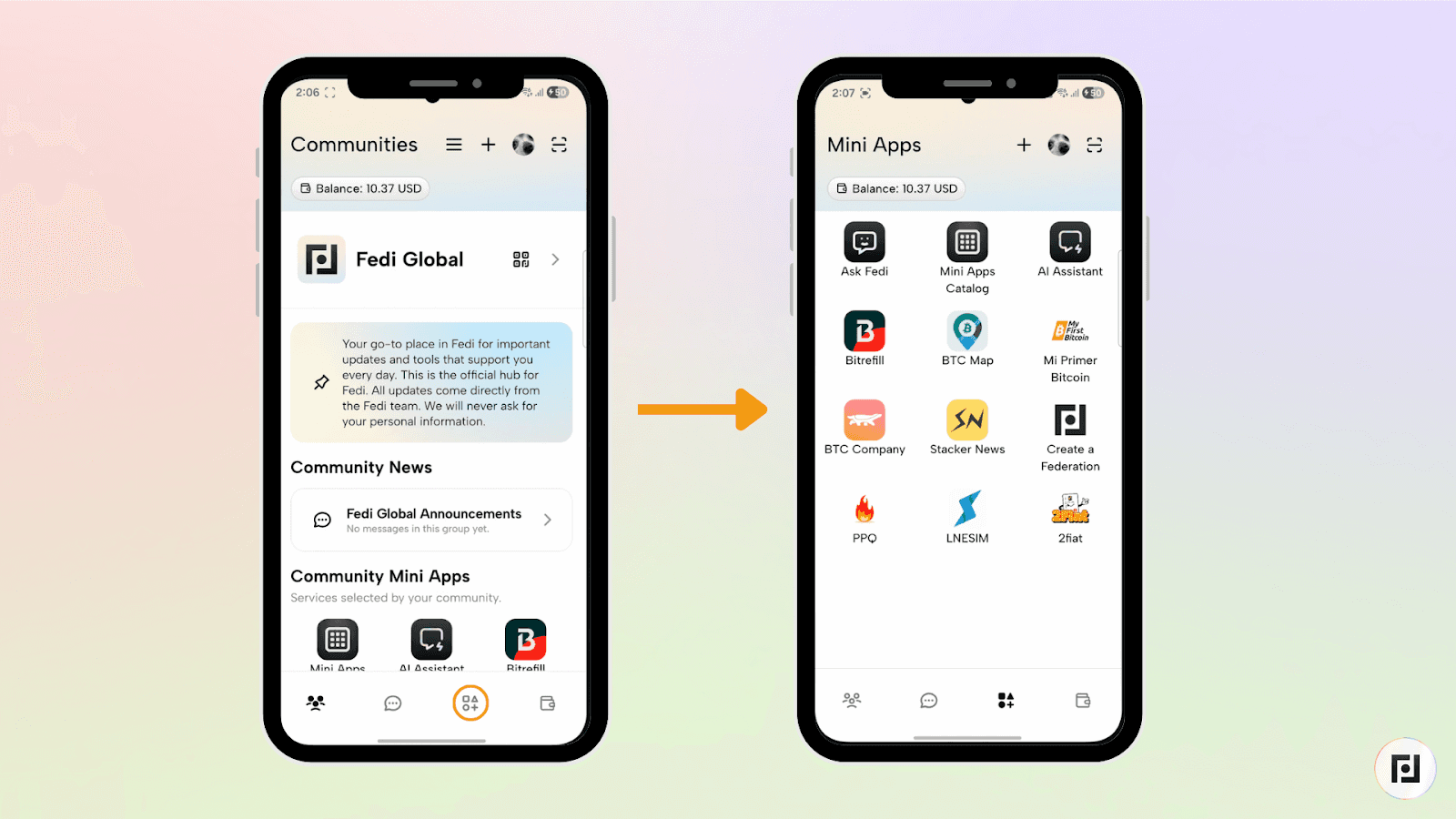 Como o MoneyBadger funciona como um Mini App no Fedi, ele conecta-se direto à tua carteira que já tens.