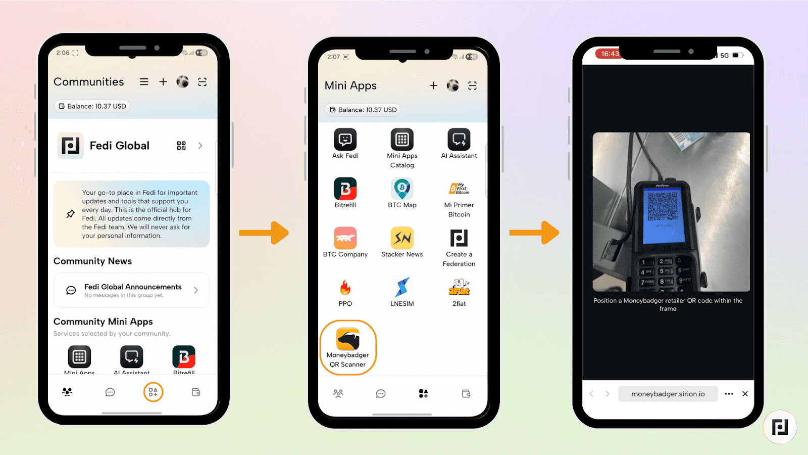 Se estás na África do Sul e queres fazer pagamentos com Bitcoin, experimenta a Mini App MoneyBadger no Fedi. Adiciona o MoneyBadger como uma Mini App pessoal, escaneia o código QR do comerciante e paga em bitcoin.